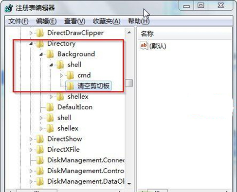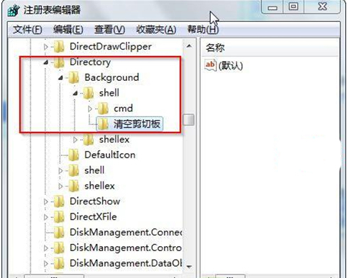 2、在打开的注册表编辑器中,依次选择进入HKEY_CLASSES_ROOT/Director/Backgroud/shell,在shell文件夹上右键选择“新建”——“项”,命名为“清空剪切板”。