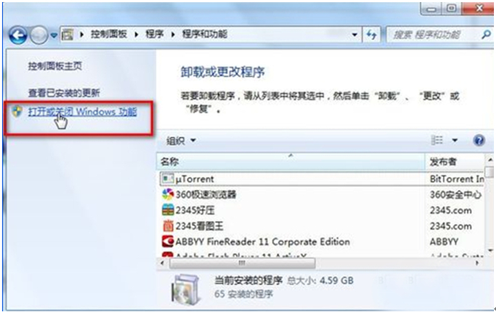 2. 点击“打开或关闭Windows系统功能”