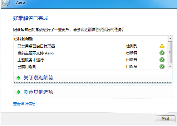 3、在故障解决窗口中,点击下一步,这样系统便会自动检测主题灰色无法修改的故障了,成为默认主题,Windows7主题无法修改的问题就解决了。