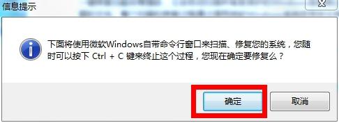 2.选择一键修复弹出对话框,选择确定按钮即可。执行步骤(6)