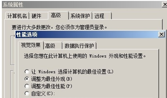 2.如果不能开启梦幻桌面功能,把视觉效果设为最佳外观。依次点击“我的电脑—属性 —高级系统设置—高级—性能—设置—调整为最佳外观”。