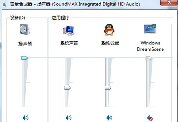 如果想听到视频里的声音,可以在任务栏的扬声器右键打开“合成器”,然后取消Windos DreamScene的静音。