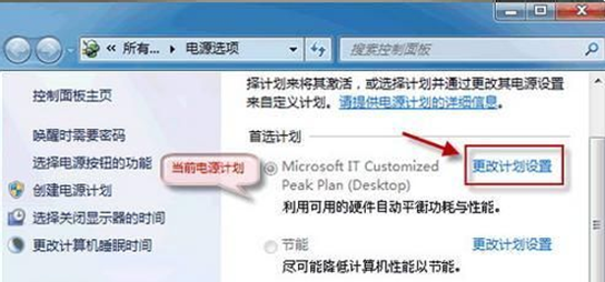 1.在开始搜索框中输入“电源选项”后按回车。打开电源选项,单击“更改计划设置”。