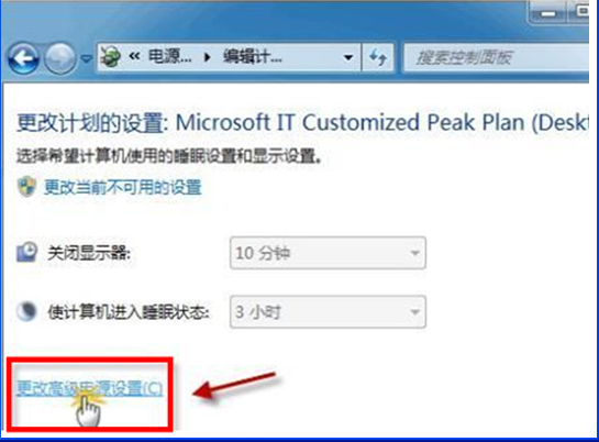 2.在更改电源计划设置中单击“更改高级电源设置”。