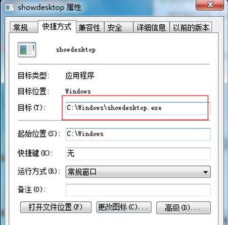 4.到C:\windows目录中找到刚才保存的showdesktop.exe文件,将该文件拖动到任务栏中,
