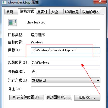6.我们将其修改为Scf的文件,修改完就可以使用显示桌面的功能了,如图所示: