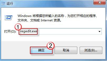 1. 按“Win+R”组合键调出“运行”命令框,输入“regedit.exe”命令后点击“确定”。