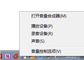 2. 更新后重启电脑,重启后右击声音标志,选择“录音设备”, 如图示。