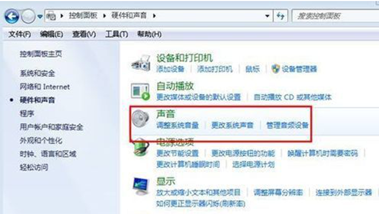 1、点击“开始——控制面板——硬件和声音——声音”
