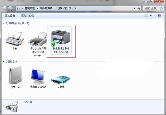 6、这样局域网的打印机就加进来了。