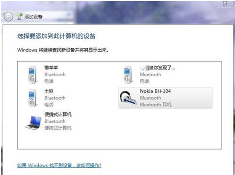 Windows 7系统中蓝牙耳机和pc的连接步骤如下: