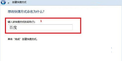 3、接着在“键入快捷方式的名称”处键入设置的网址名称,比如这里是“百度”。