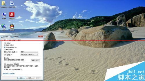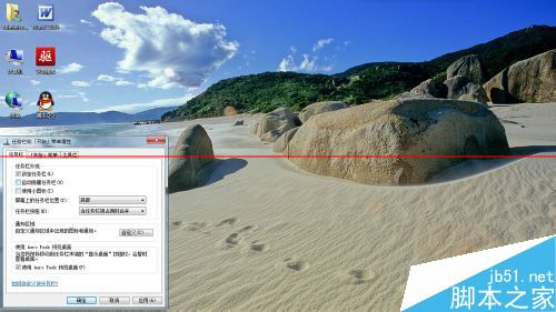 4、此时出现属性菜单,在任务栏外观栏目下发现:第2行“自动隐藏任务栏”项打上了勾;