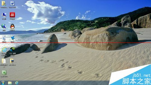 2、将鼠标放到桌面最底端,任务栏自动出现。