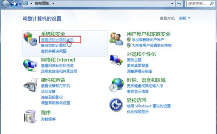 1、点击“开始——控制面板——在系统和安全选项下点击查看计算机状态”。