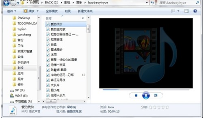 3、预览音乐和视频文件时的技巧:无需运行播放器也可实现享受音乐或观看影片,非常方便、实用。
