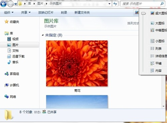 1、Windows7资源管理器提供了超大图标、大图标等多样化的视图模式,特别便于用户预览缩略图。