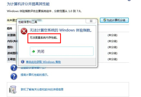 另外,在Windows 7系统中评分支持最大单个CPU的三级缓存是16M,如果超过的话,就会出现“无法度量系统内存性能”的报错。对于目前的I3、I5、I7 系列的CPU均不会超过此范围,只有一些至强Xeon的CPU超过此范围。