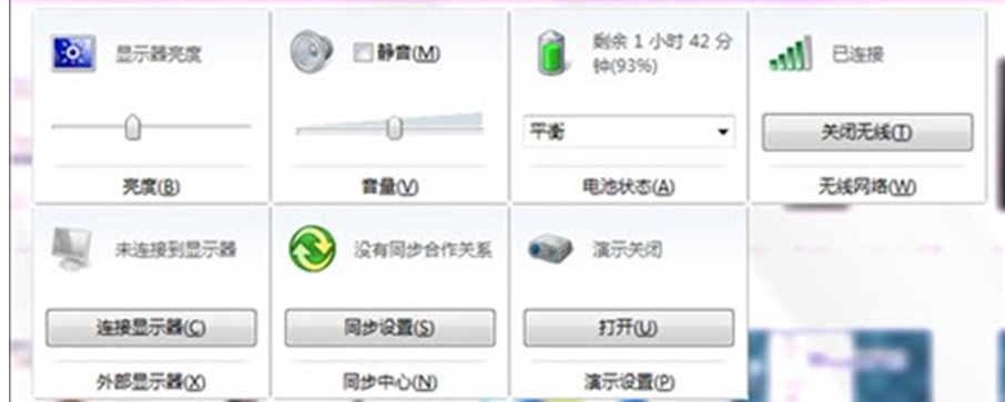 5、另外一个更强大的功能就是Win+X键,这个键位可以打开移动中心设置窗口。可快速地实现对显示器的亮度控制、音量控制、笔记本的电量控制、手机同步控制、外接显示器控制等等。