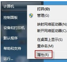 1、打开开始菜单,右键“计算机”,选择“属性”。