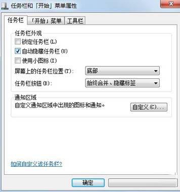 PS:如果用户想恢复回来时,按照以上的方法,在第2步中把“自动隐藏任务栏”前面的勾去掉就行了。