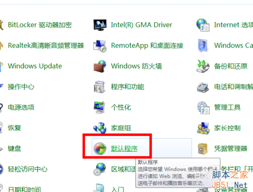 在弹出的窗口中选择‘默认程序’
