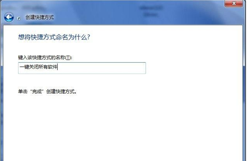 3、为该快捷方式取个名字,比如一键关闭所有软件,点击“完成”,该快捷方式就存放在你的桌面上了。