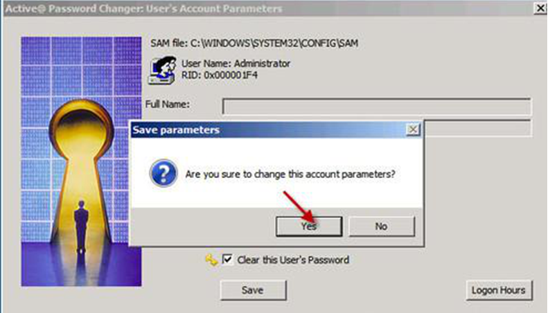 5、点击“Save”按钮,将会弹出一个确认对话框,点击“Yes”按钮进行用户密码的清除,过一会有弹窗弹出说明成功了。