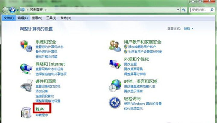 1、依次点击“开始”——“控制面板”——“程序”。