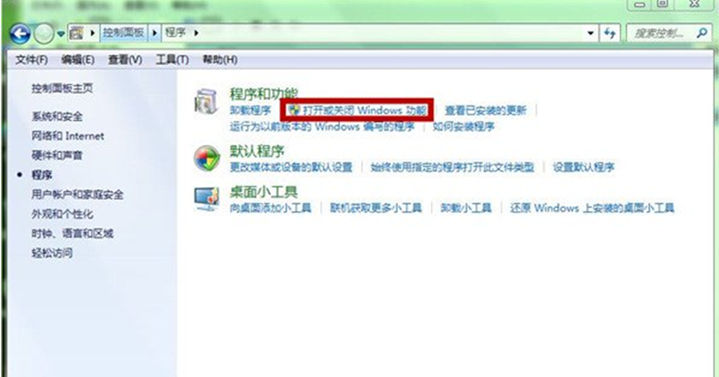 2、在“程序”窗口中,点击“程序和功能”下面的“打开或关闭Windows功能”。