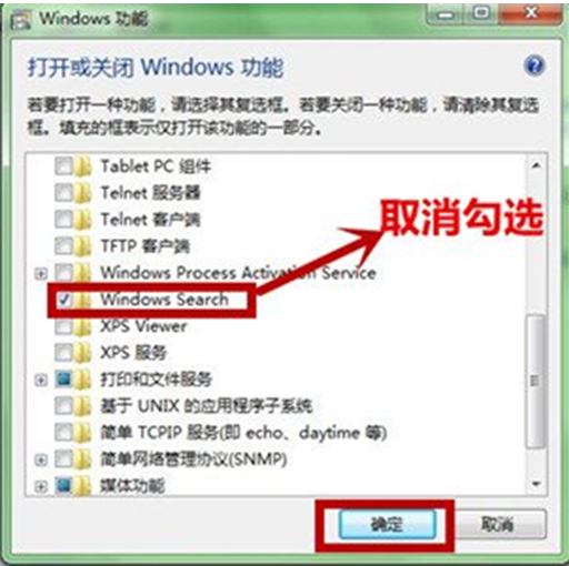 Win7系统中卸载Windows Search服务的方法