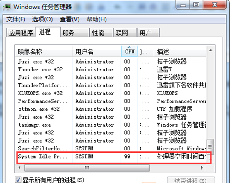 总而言之,win7系统用户看到这个进程CPU占用数值越大代表你的CPU用量越低。