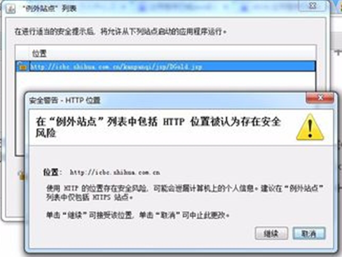 5、在位置处添加需要运行JAVA脚本,此时会弹出安全警告点击继续。