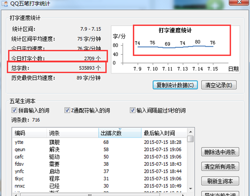 妙用QQ五笔输入法统计深度技术Win7系统中自己的打字速度