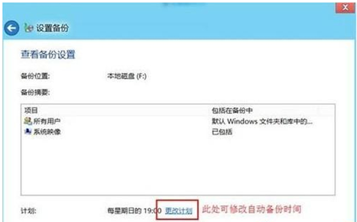 6、此时便可看到默认的计划备份时间,如需更改点击更改计划即可。设置完成后点击“保存设置并运行备份”;