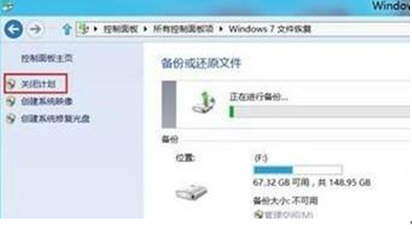 8、完成以上操作后,系统会自动开始第一次备份,如果不想再备份了,点击左侧的“关闭计划”即可。