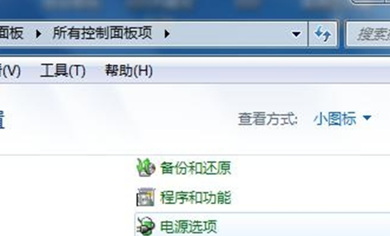 2、在控制面板上选择以小图标为查看方式,打开“电源选项”。