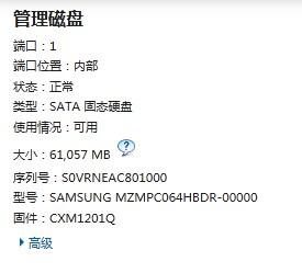 3、点击管理,或点击右边任意一个存储设备驱动器,都可弹出存储设备属性信息,在其输出信息中并不能发现任何可在win7之中关闭快速存储服务的接口。