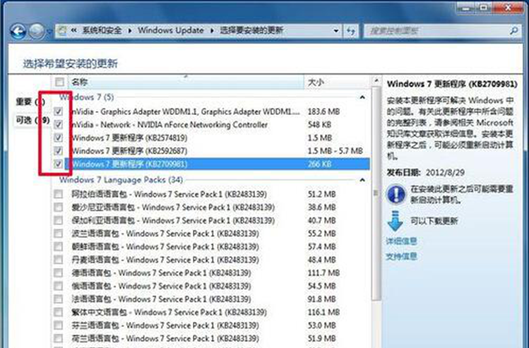 3、勾选需要更新的项目。