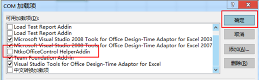 3、找到 并去掉“NtkoOfficeControl HelperAddin”选项前面的勾选。