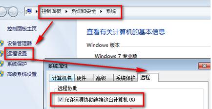 2、返回到Win7 64位系统电脑的桌面位置,右键计算机图标,选择属性,在打开的属性窗口中,点击远程设置,勾选“允许远程协助连接这台计算机”,最后点击确定保存设置。