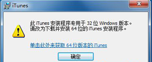 其实iTunes也分64位和32位的,对应系统是64位还是32位来进行下载,所以出现这样的提示,说明你的系统是64位的,所以你不能安装32位的iTunes。