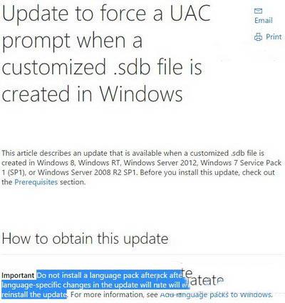 尚未安装该补丁的用户需要谨慎对待这一更新,可先安排好语言设置后再进行安装。已经安装kb3045645的用户,如果不需要再安装其他语言包安装的话,也可不需任何改变;如果需要安装语言包,可先卸载该补丁后再进行语言设置。
