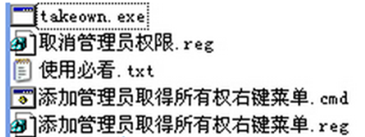 2、将 takeown.exe 复制到 C:\Windows\system32 文件夹中,导入添加管理员取得所有权右键菜单.reg 注册表文件,即可给XP系统添加“管理员取得所有权”右键菜单。