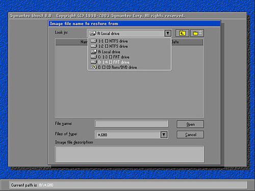3、可重新读取盘后进入PE找到相应的备份,再利用ghost直接加载这个备份进行还原即可。