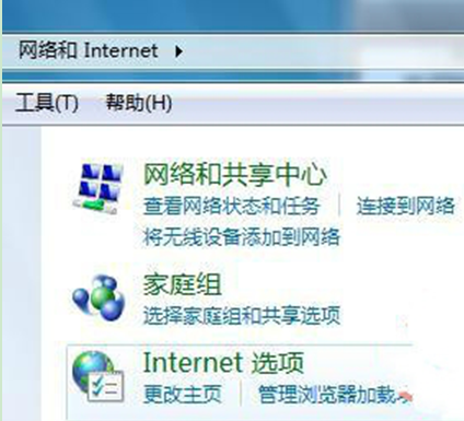 1、点击“开始——控制面板——网络和Internet——Internet选项”;
