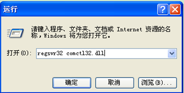 2、点击“开始——运行”,输入“regsvr32 comctl32.dll”,回车之后即可。