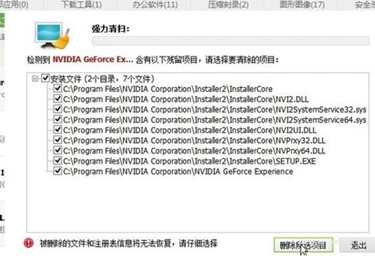 如何彻底卸载NVIDIA GEFORCE EXPERIENCE的介绍了,360强力扫描与清除残留的卸载文件,另外此方法还适合其他软件应用程序卸载。