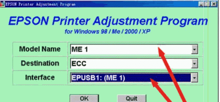 1、到官网下载爱普生ME1清零软件,打开它,在弹出的界面中选择好打印机型号以及端口,点击“OK”;