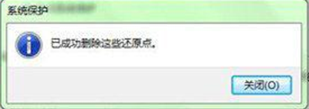 5、系统会提示“已经成功删除这些还原点”,点击“关闭”